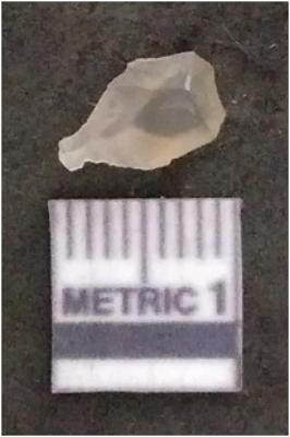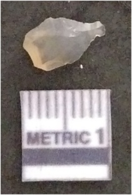 | Description / विवरण | It is chalcedony flake, translucent in appearance. The piece shows sharp pointed ends and flake scars on the surface as a result of flaking. The piece shows a bulb of percussion. |