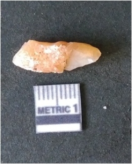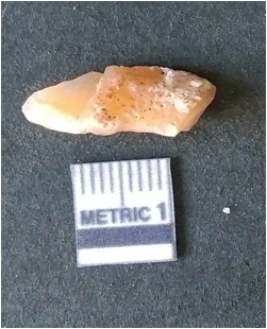 | Description / विवरण | It is chalcedony flake, translucent in appearance. The piece shows sharp pointed ends and flake scars on the surface as a result of flaking. The piece shows a bulb of percussion. |