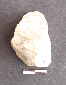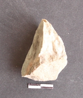 | Description / विवरण | Quartz with lots of impurities, covered with cortex on one side. Triangular in shape and flakes had been removed. |