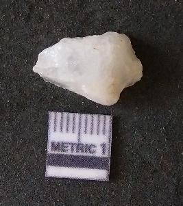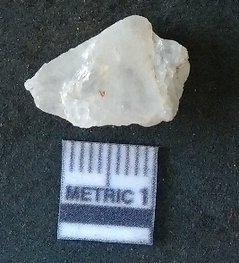 | Description / विवरण | The quartz fragment shows prominent flaks scars and sharp flaked ends as a result of flaking. The piece is translucent white and shows cryptocrystalline matrix. |