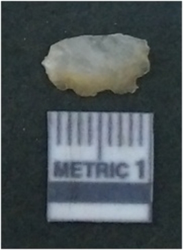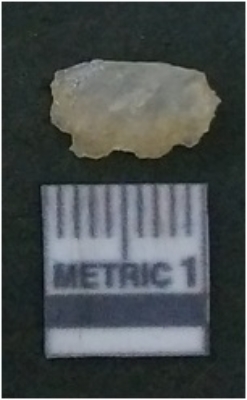 | Description / विवरण | It is chalcedony flake, translucent in appearance. The piece shows sharp pointed ends and flake scars on the surface as a result of flaking. The piece shows a bulb of percussion. |