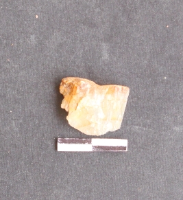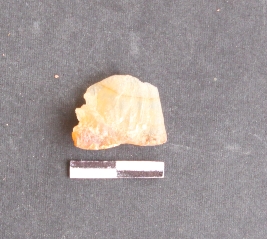 | Description / विवरण | The chalcedony piece is irregularly shaped, with sharp edges and pointed end. The piece has numerous flake scars. |