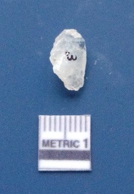 | Description / विवरण | It is a flake. The ridges and flake scars are clearly seen on the dorsal surface while the ventral surface is plain. The lateral sides are sharp and it is white in colour. |