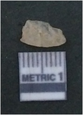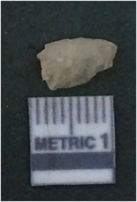 | Description / विवरण | It is chalcedony flake, translucent in appearance. The piece shows sharp pointed ends and flake scars on the surface as a result of flaking. The piece shows a bulb of percussion. |
