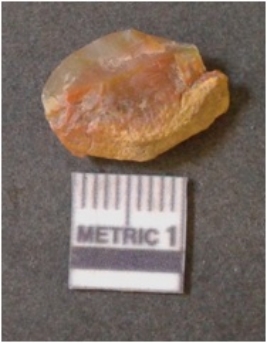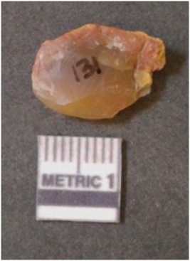 | Description / विवरण | It is chalcedony flake, translucent in appearance. The piece shows sharp pointed ends and flake scars on the surface as a result of flaking. The piece shows a bulb of percussion. |