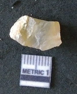 | Description / विवरण | The chalcedony flake is pale yellow in color. Translucent in appurtenance. The piece is shows sharp pointed ends and flake scars on the surface. As a result of flaking. |