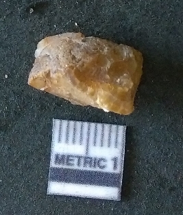 | Description / विवरण | The chalcedony flake is pale yellow in color. Translucent in appurtenance. The piece is shows sharp pointed ends and flake scars on the surface. As a result of flaking. |
