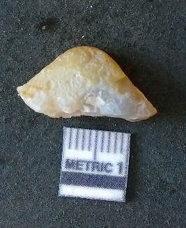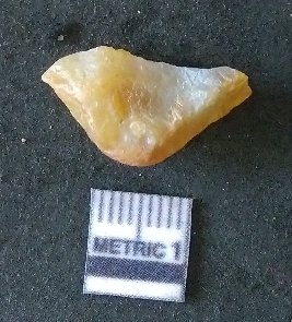 | Description / विवरण | The chalcedony flake is pale yellow in color. Translucent in appurtenance. The piece is shows sharp pointed ends and flake scars on the surface. As a result of flaking. |