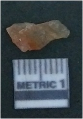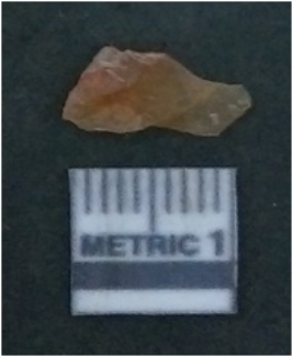 | Description / विवरण | It is chalcedony flake, translucent in appearance. The piece shows sharp pointed ends and flake scars on the surface as a result of flaking. The piece shows a bulb of percussion. |