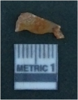 | Description / विवरण | It is chalcedony flake, translucent in appearance. The piece shows sharp pointed ends and flake scars on the surface as a result of flaking. The piece shows a bulb of percussion. |