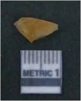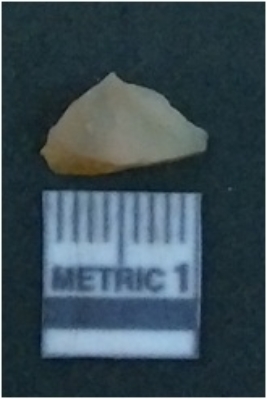 | Description / विवरण | It is chalcedony flake, translucent in appearance. The piece shows sharp pointed ends and flake scars on the surface as a result of flaking. The piece shows a bulb of percussion. |