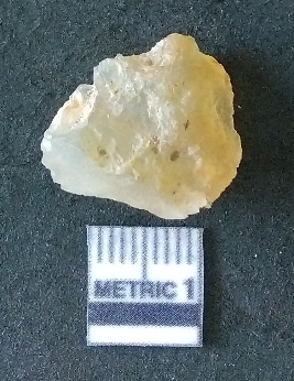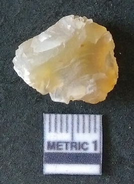 | Description / विवरण | The chalcedony flake is pale yellow in color. Translucent in appurtenance. The piece is shows sharp pointed ends and flake scars on the surface. As a result of flaking. |