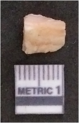 | Description / विवरण | The rosy quartz flake has sharp flaked edges and pointed ends as a result of flaking. The piece is semi-transparent in nature with irregular fracture pattern. The piece is roughly triangular in shape and has a prominent bulb of percussion. |