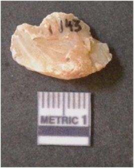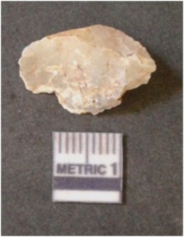 | Description / विवरण | The flake has irregular fracture pattern and sharp flaked edges as a result of lithic knapping activity. The piece is pale, with surfacial flake scars and a bulbous end. The quartz flake is rosy white in colour. |