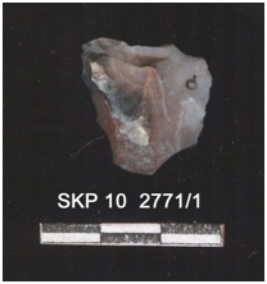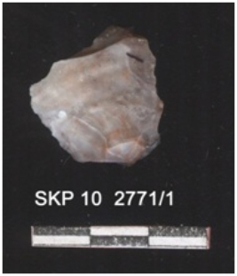| Description / विवरण | It is fragment of jasper, the striking platform can be seen. The ventral surface is plain. |