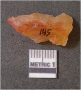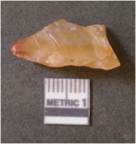 | Description / विवरण | It is chalcedony flake, translucent in appearance. The piece shows sharp pointed ends and flake scars on the surface as a result of flaking. The piece shows a bulb of percussion. |