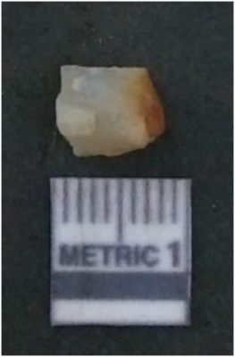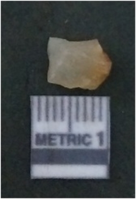 | Description / विवरण | It is chalcedony flake, translucent in appearance. The piece shows sharp pointed ends and flake scars on the surface as a result of flaking. The piece shows a bulb of percussion. |