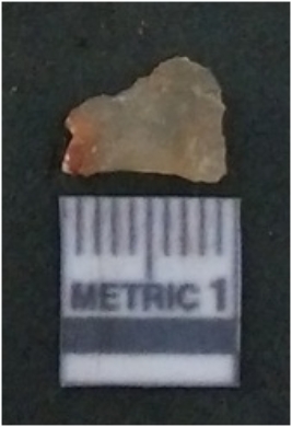 | Description / विवरण | It is chalcedony flake, translucent in appearance. The piece shows sharp pointed ends and flake scars on the surface as a result of flaking. The piece shows a bulb of percussion. |