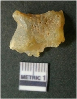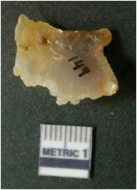 | Description / विवरण | It is chalcedony flake, translucent in appearance. The piece shows sharp pointed ends and flake scars on the surface as a result of flaking. The piece shows a bulb of percussion. |