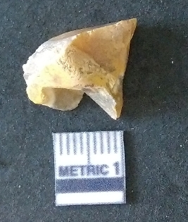 | Description / विवरण | The chalcedony flake is pale yellow in color. Translucent in appurtenance. The piece is shows sharp pointed ends and flake scars on the surface. As a result of flaking. |