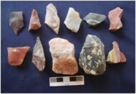 | Description / विवरण | Quartz 4 Agate 4 Chert 2 Jasper 7 Total No. of Debitage 17 Mainly flakes are present in the same. Some stones have flake scars. |
