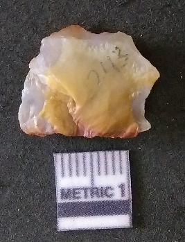 | Description / विवरण | The chalcedony flake is pale yellow in color. Translucent in appurtenance. The piece is shows sharp pointed ends and flake scars on the surface. As a result of flaking. |