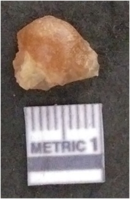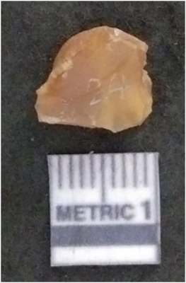 | Description / विवरण | It is chalcedony flake, translucent in appearance. The piece shows sharp pointed ends and flake scars on the surface as a result of flaking. The piece shows a bulb of percussion. |
