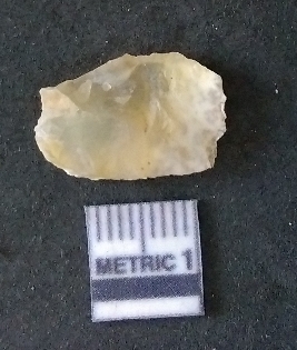 | Description / विवरण | The chalcedony flake is pale yellow in color. Translucent in appurtenance. The piece is shows sharp pointed ends and flake scars on the surface. As a result of flaking. |