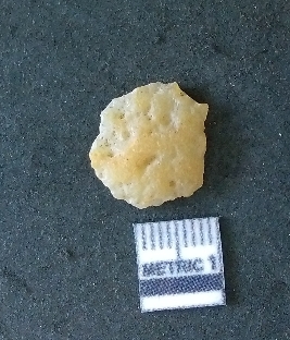 | Description / विवरण | The chalcedony flake is pale yellow in color. Translucent in appurtenance. The piece is shows sharp pointed ends and flake scars on the surface. As a result of flaking. |