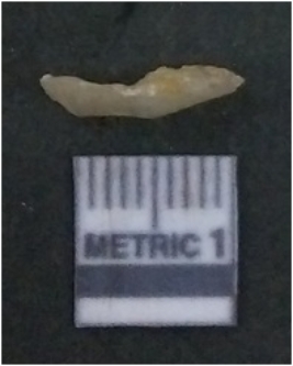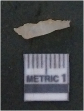 | Description / विवरण | It is chalcedony flake, translucent in appearance. The piece shows sharp pointed ends and flake scars on the surface as a result of flaking. The piece shows a bulb of percussion. |