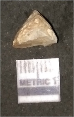 | Description / विवरण | The quartz flake has sharp flaked edges and pointed ends as a result of flaking. The piece is semi-transparent in nature with irregular fracture pattern. The piece is roughly triangular in shape and has a prominent bulb of percussion. |