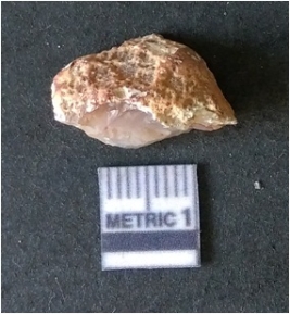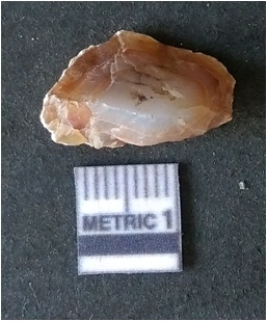 | Description / विवरण | It is chalcedony flake, translucent in appearance. The piece shows sharp pointed ends and flake scars on the surface as a result of flaking. The piece shows a bulb of percussion. |