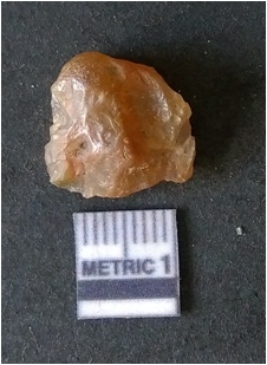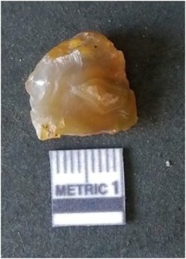 | Description / विवरण | It is chalcedony flake, translucent in appearance. The piece shows sharp pointed ends and flake scars on the surface as a result of flaking. The piece shows a bulb of percussion. |