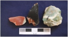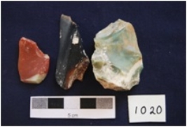 | Description / विवरण | Three Flakes, made on chert, prepared platform, diffused bulb on ventral side whereas bulb absent on flake, byproduct of tool manufacturing. |