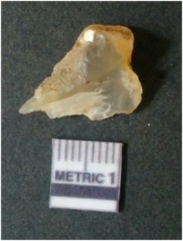 | Description / विवरण | The banded agate piece is crystalline in nature, with a smooth fracture pattern and visible bands on the flaked sides. The piece is pale in color and has sharp flaked ends. |