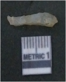 | Description / विवरण | It is chalcedony flake, translucent in appearance. The piece shows sharp pointed ends and flake scars on the surface as a result of flaking. The piece shows a bulb of percussion. |