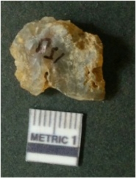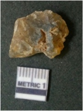 | Description / विवरण | The agate piece is translucent in appurtenance, with angular flaked edges and a bulb of percussion. The piece shows flake scars on the surface. |