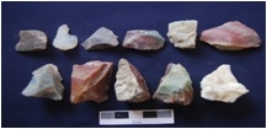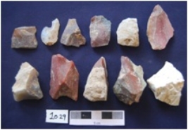 | Description / विवरण | Flakes, byproduct of tool manufacturing, made on Chert, Chalcedony and Agate, a few flakes with prepared platform, diffused bulb on ventral side whereas a few flakes with narrow platform, bulb absent on ventral side. |