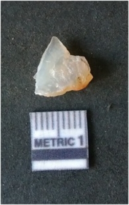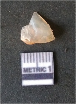 | Description / विवरण | It is chalcedony flake, translucent in appearance. The piece shows sharp pointed ends and flake scars on the surface as a result of flaking. The piece shows a bulb of percussion. |