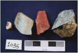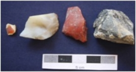 | Description / विवरण | Cores and Flakes, byproduct of tool manufacturing, made on chert and chalcedony, core with flake scars on both sides, prepared platform, fragments of flakes with narrow platform, diffused bulb on ventral side. |