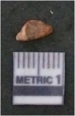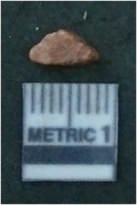 | Description / विवरण | The quartz flake has sharp flaked edges and pointed ends as a result of flaking. The piece is semi-transparent in nature with irregular fracture pattern. The piece is roughly triangular in shape and has a prominent bulb of percussion. |