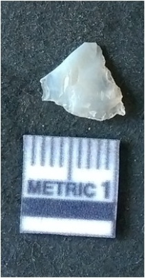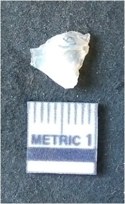 | Description / विवरण | The quartz flake has sharp flaked edges and pointed ends as a result of flaking. The piece is semi-transparent in nature with irregular fracture pattern. The piece is roughly triangular in shape and has a prominent bulb of percussion. |