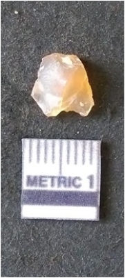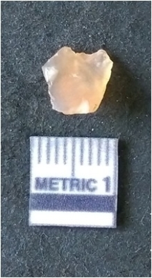 | Description / विवरण | It is chalcedony flake, translucent in appearance. The piece shows sharp pointed ends and flake scars on the surface as a result of flaking. The piece shows a bulb of percussion. |
