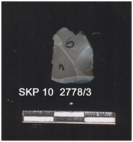 | Description / विवरण | It is a fragment of chert, the ridges and striking platform can be seen. It is the byproduct of stone tool manufacturing. |