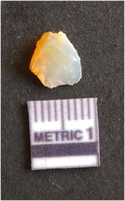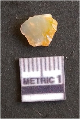 | Description / विवरण | It is chalcedony flake, translucent in appearance. The piece shows sharp pointed ends and flake scars on the surface as a result of flaking. The piece shows a bulb of percussion. |