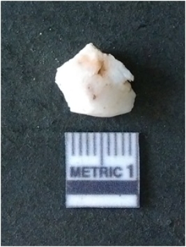 | Description / विवरण | The quartz flake has sharp flaked edges and pointed ends as a result of flaking. The piece is semi-transparent in nature with irregular fracture pattern. The piece is roughly triangular in shape and has a prominent bulb of percussion. |