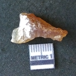 | Description / विवरण | The chalcedony flake is pale yellow in color. Translucent in appurtenance. The piece is shows sharp pointed ends and flake scars on the surface. As a result of flaking. |