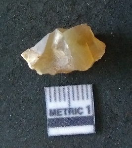 | Description / विवरण | The chalcedony flake is pale yellow in color. Translucent in appurtenance. The piece is shows sharp pointed ends and flake scars on the surface. As a result of flaking. |