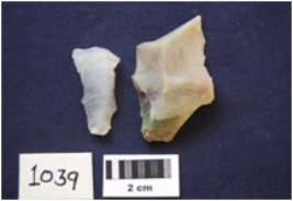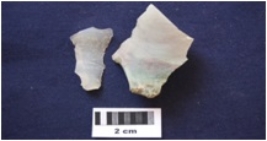 | Description / विवरण | Fragments of blades, made on chert and chalcedony, prepared platform, diffused bulb on ventral side, broken along one end. |