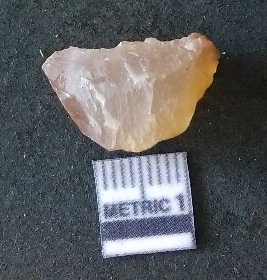 | Description / विवरण | The chalcedony flake is pale yellow in color. Translucent in appurtenance. The piece is shows sharp pointed ends and flake scars on the surface. As a result of flaking. |